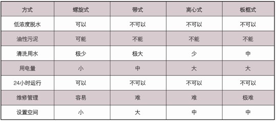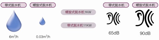 在處理量相同的前提下,螺旋式運(yùn)行成本為7.99元/h,離心式為24.6元/h,帶式為27.6元/h,相對(duì)而言,螺旋式運(yùn)行成本為離心式的1/3,是帶式的1/4左右,若以一天8小時(shí)工作時(shí)間,工作一個(gè)月計(jì)算著得出: