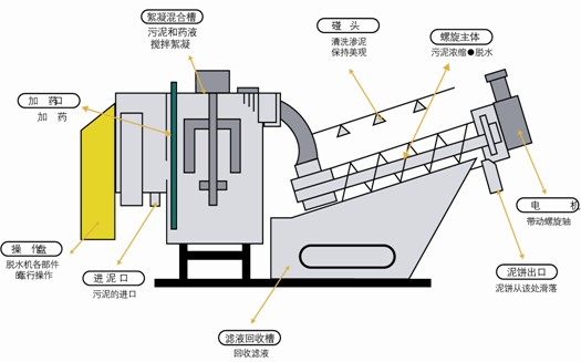●    脫水機(jī)主體具有自我清洗功能,故不必為防止污泥堵塞而大量用水清洗。
