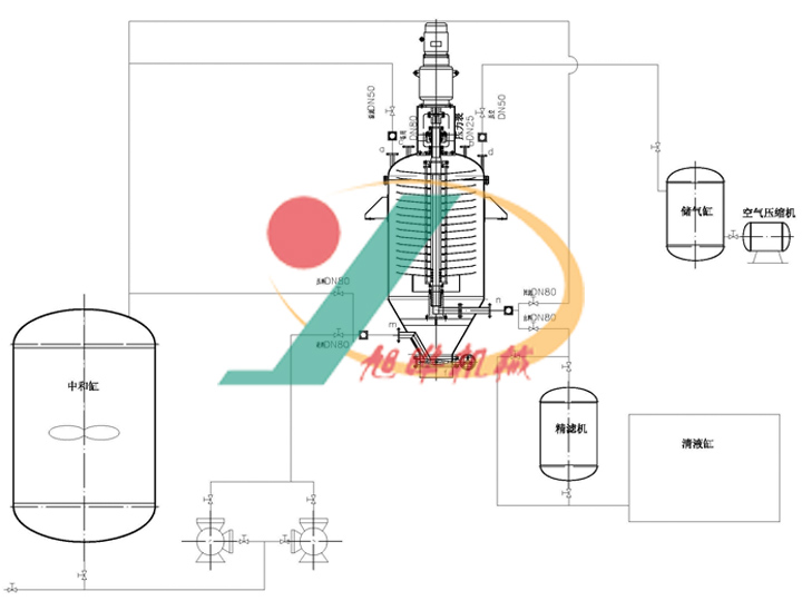 (5) 過濾系統:濾盤;濾網片;出液傳動主軸;機械密封等。排渣結束后使用清洗裝置清理排渣口。