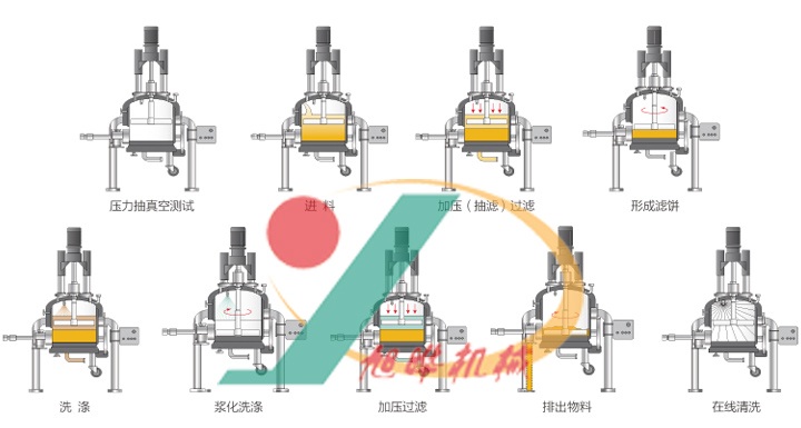 (5) 攪拌漿葉的升降和攪拌,使得清洗時濾餅和清洗液充分混合,濾餅得到充分洗滌,提高效率